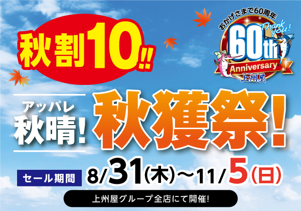 店内商品5,500円(税込み)以上のお買い物で、上州屋メンバーズカードのポイントが