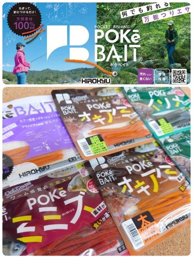 ポケベイトは、常温保存OK! 100%食品素材で作ったワーム感覚の万能つりエサです。
