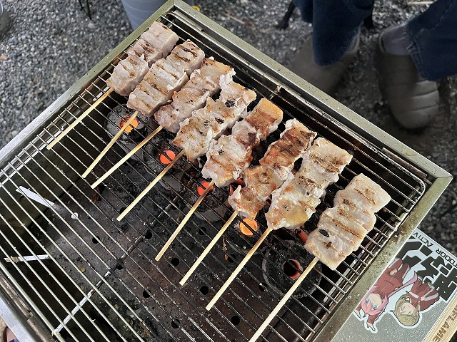 キャン友M君は『豚の串焼き』&『焼き鳥』を炭火で黙々と焼いてくれました。ご馳走様です♪