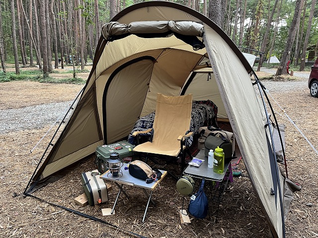 そこで今回はお籠りキャンプもしやすく、インナーを外してシェルターとしても使える『ogawa(キャンパルジャパン) ヴィガスⅡ』張ってみました!