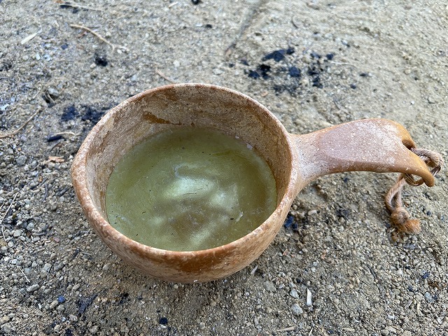 翌朝はクピルカに注いでいた飲み物がカチコチに...夜の気温は大体-8℃~-9℃程まで下がっていました...。