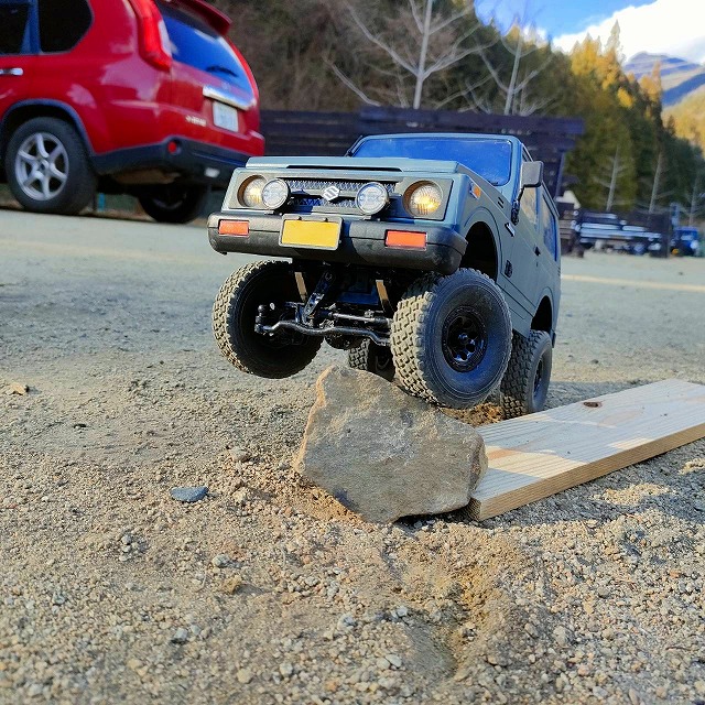薪などを使ってオフロードコースを作って走らせたり、写真をとってみたり、