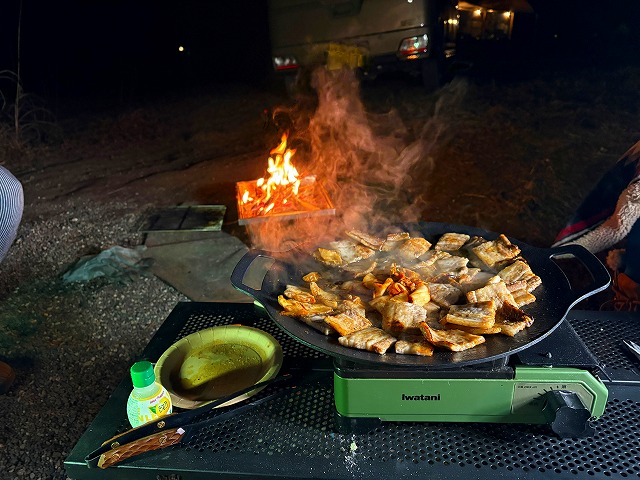 食べ終わる頃にキャン友Tさんから『サムギョプサル食べない~~~!』とお声が! 『食べるぅ~~~』と合流し宴開始。