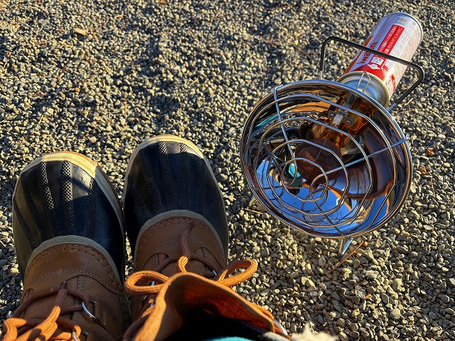 そんな時は手早く暖まりましょう~~! 今回大活躍の『アウトドアヒーター』。 これがあってホント暖まりました♪