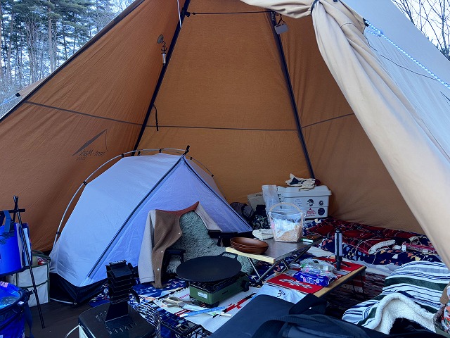 時間と共に下がる気温。 2次会はポカポカ床暖のテントで「ワイワイ」。楽しい時間が続きます♪