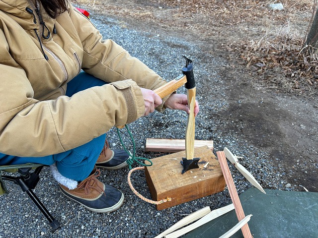 薪割りにも参加。クサビで気持ち良く「パキ-ン!」。おもしろい!!