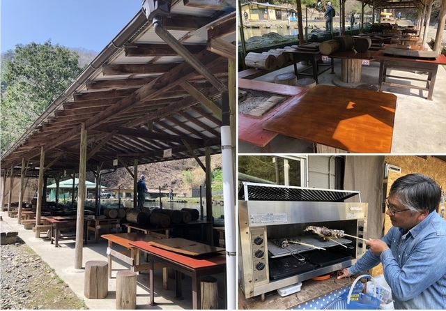 100名収容可能なバーベQコーナー。ご希望によりオーナー渡辺さんが塩焼きにしてくれます(有料)。