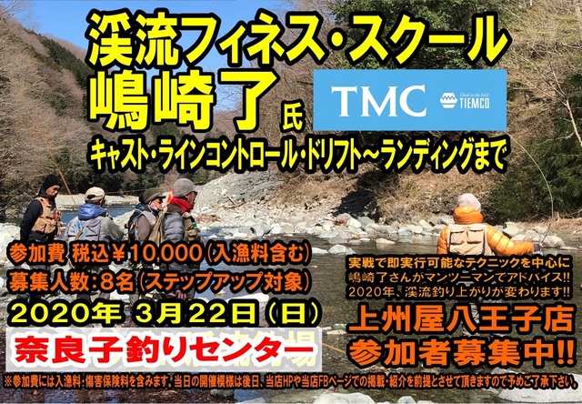 2020年3月22日(日) 山梨県奈良子釣りセンターさんにて、ティムコ嶋崎了さんを講師にお招きしての「渓流フィネス・フライフィッシングスクール」が開催されました。
