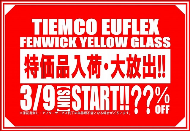 TIEMCO/FENWICK フライロッド特価品入荷・大放出!!
