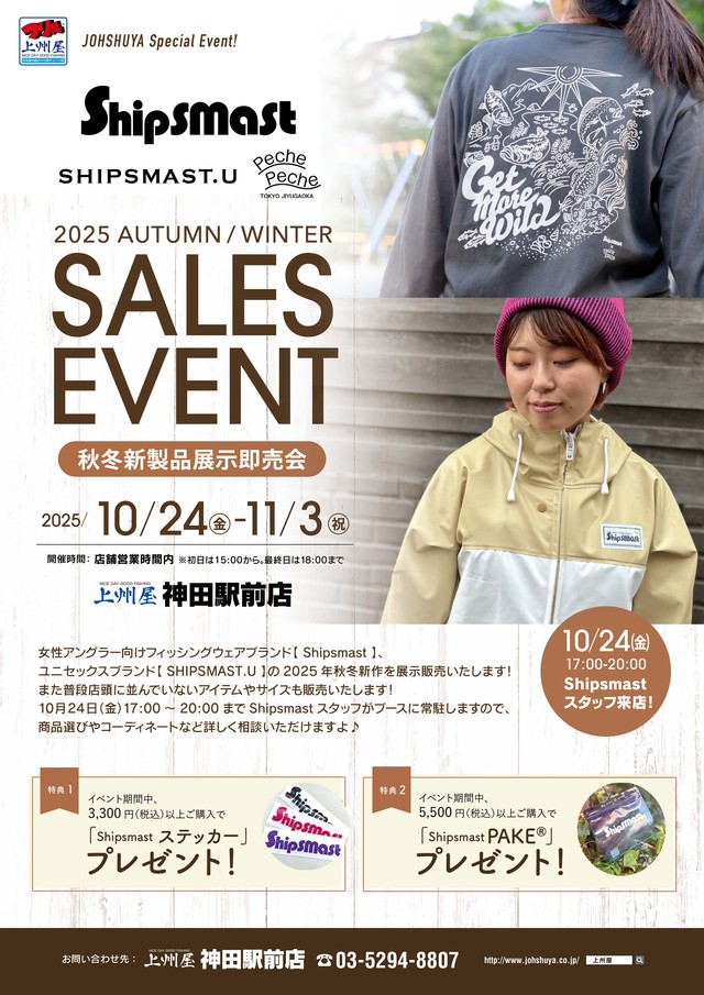 10/24(金)は17:00~20:00の時間、Ships mastスタッフがブースに常駐いたしますので商品選びやコーディネートなど詳しく相談できますよ♪