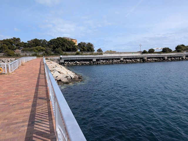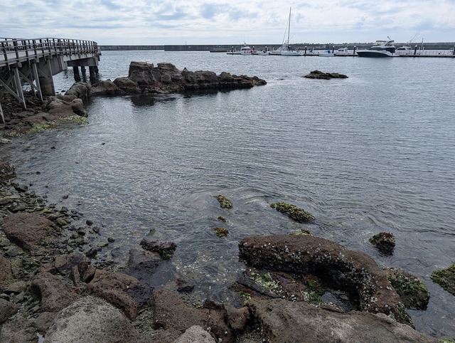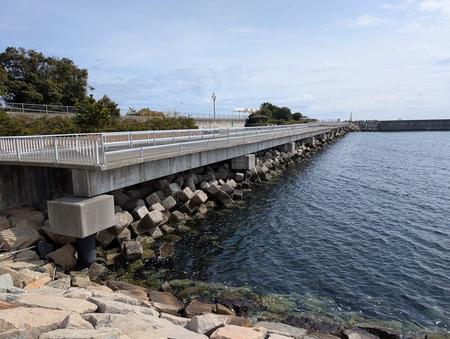 ウッドデッキの奥には堤防があり、際にもしっかり海藻が生えているのでこちらでもイカが狙えます。また、海藻や岩礁に身を隠そうと沢山の根魚も寄ってきているのでメバルやソイなども狙えます。