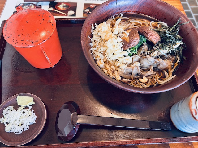 上野村の特産のしいたけや舞茸の煮つけが入ったお蕎麦は初めてでした。