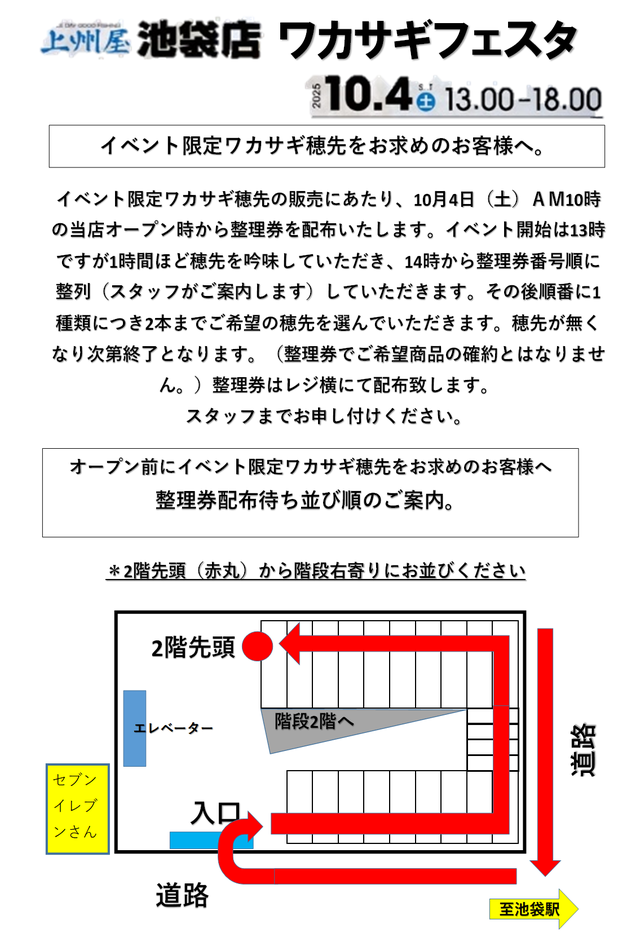 整理券はレジ横にて配布致します(スタッフがご案内致します)。穂先を購入希望のお客様は整理券をお求めください。