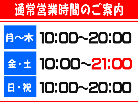 金・土 10:00~21:00