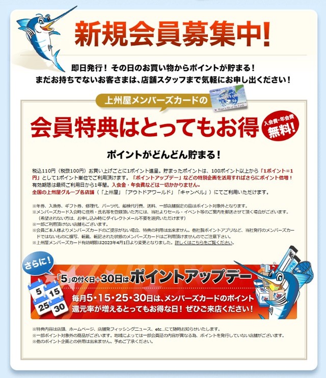 全国の上州屋グループ各店舗(「上州屋」「アウトドアワールド」「キャンベル」)にてご利用いただけます。