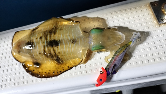 アオリイカはたくさんいました!浮いてきたアオリイカはキャストでも狙えるのでティップランタックルの他に短いめのエギングタックルも用意すると効率よく狙えますよ。