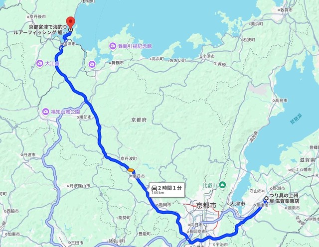 宮津まで名神→京滋バイパス→縦貫で約2時間。