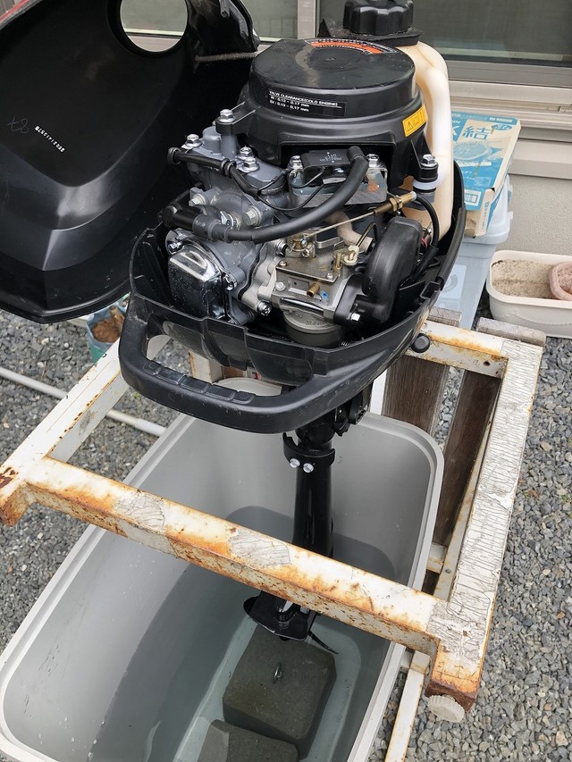 船外機(エンジン)は水冷も空冷も必ず水に漬けて試運転