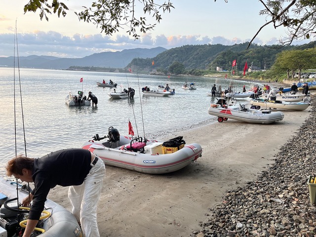 ボート釣行当日、日本海の夜明け前にボーター達が近畿一円から続々と集まり準備を行っています。