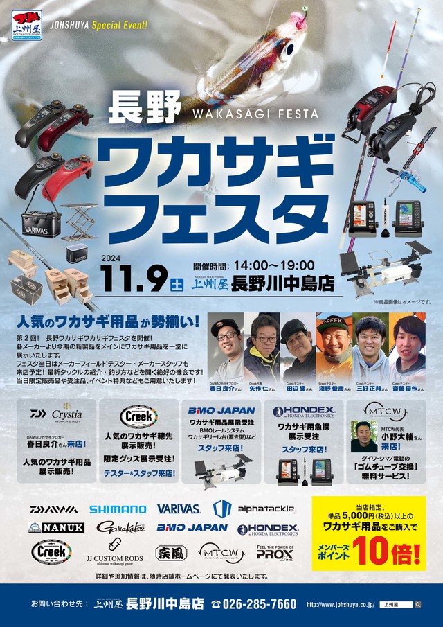 当日は是非、上州屋長野川中島店へお出掛け下さいませ