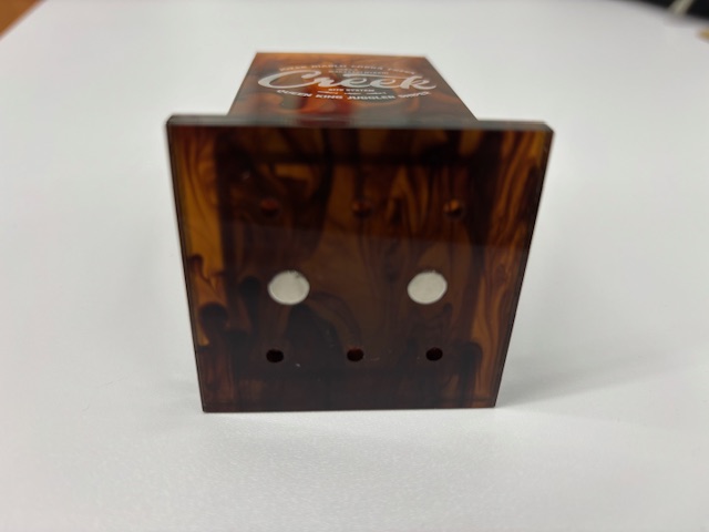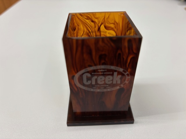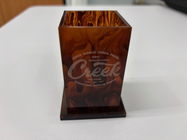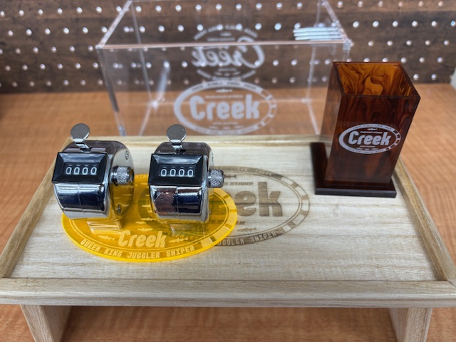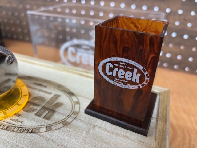 前後面にそれぞれ異なったCREEKロゴを配置。こちらは切削による加工なので、時間が経っても色あせることなく長く使用できます。