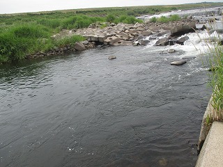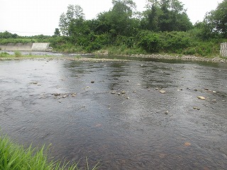 旭橋上流、入合堰下もポイントです。昨年良く釣れた場所です。今年も多くの鮎が居ました。