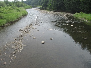 石が細かい場所ですが、天然鮎が沢山おり、瀬の中は石がピカピカでした。