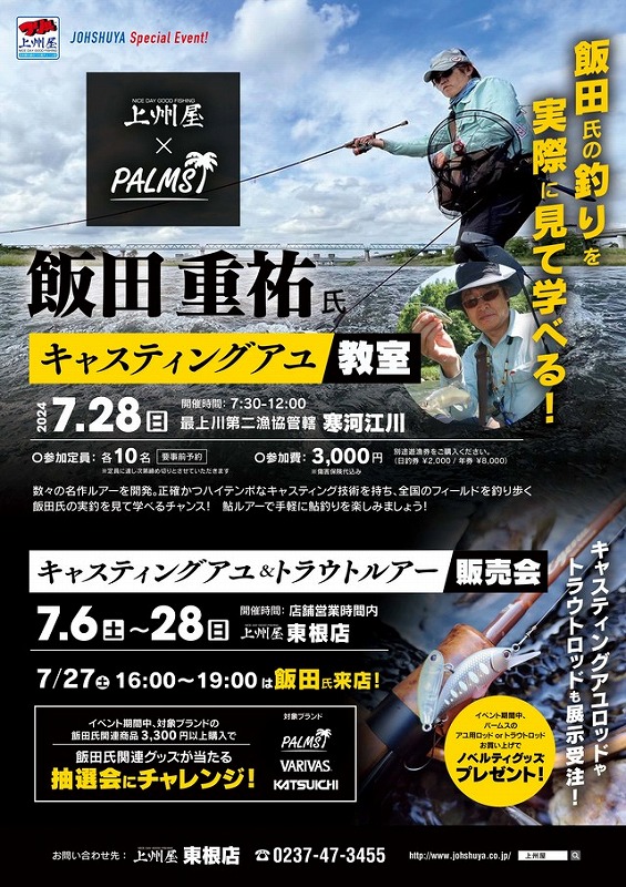 7/28(日)のキャスティングアユ教室は定員が集まりました。