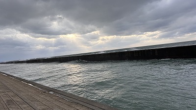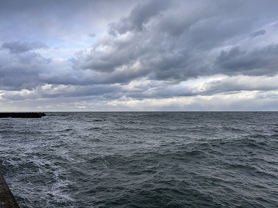 北港水路は数名釣り人がおりましたが、はたはたの釣果はありませんでした…。が、沖堤防の先には鳥が旋回しており気配を感じました!