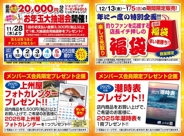◎店内商品税込み5,500円以上お買い上げのメンバーズ会員様でご希望の方には2025年上州屋フォトカレンダーをプレゼント!