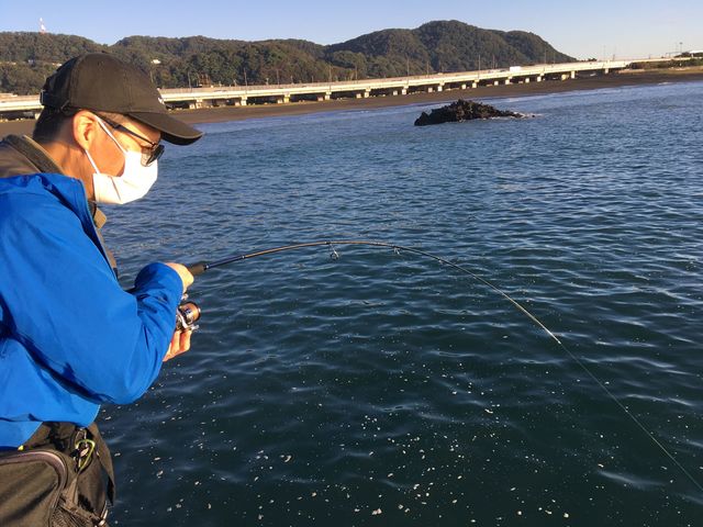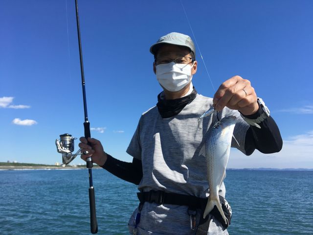 朝イチは、青物狙いでジグサビキを投入!何投かすると隣で同じくジグサビキを投げていた座間店スタッフさんの挙動が・・・