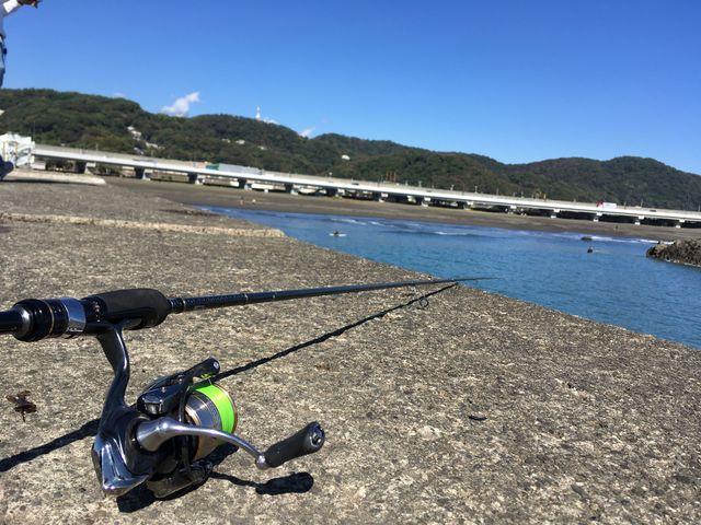 この時期は10~20mも投げれば十分なので、タックルはライトソルトゲームロッド+スピニングリール2500番、ラインはPE0.6号+リーダーにフロロ8lbをチョイス。