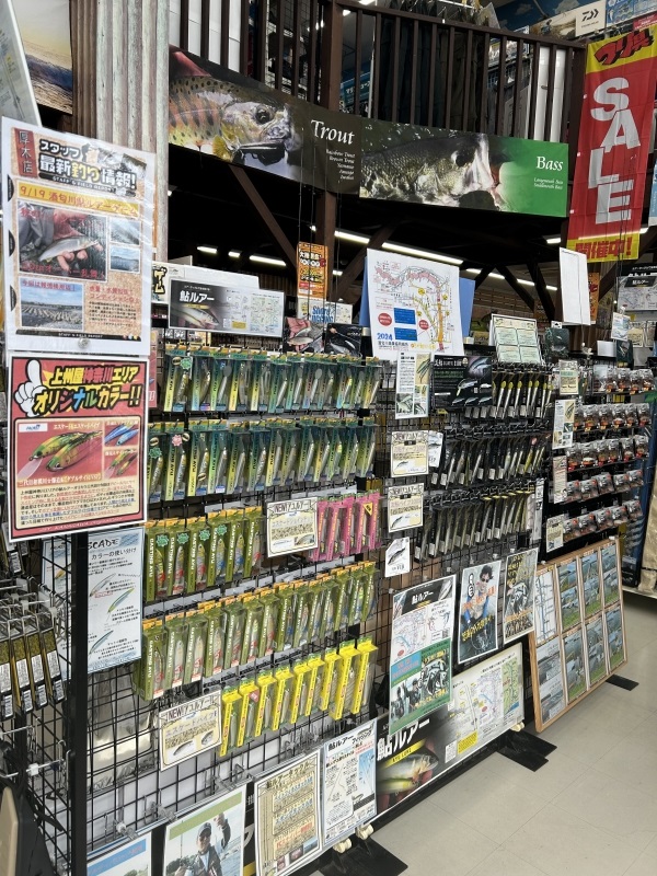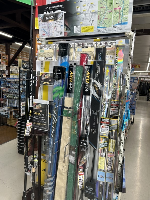 鮎ルアーのロッドや各種ルアー、ライン、フック類、友舟、タビ等の