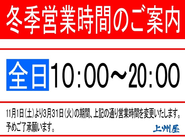 | 営業時間 | 日~木曜日、祝日は10:00~20:00、金・土曜日、祝前日は10:00~21:00となります。 宜しくおねがいします ※年末年始・祝日前後および冬季期間は一部変則営業となる場合がございます。 営業時間は営業カレンダーよりご確認下さい。 |