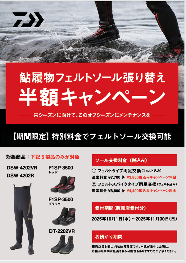 ダイワ「鮎履物フェルトソール張り替えキャンペー…