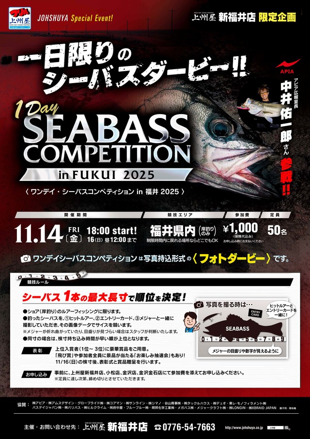 1DAY SEABASS COMPETITION 福井大会開催!!