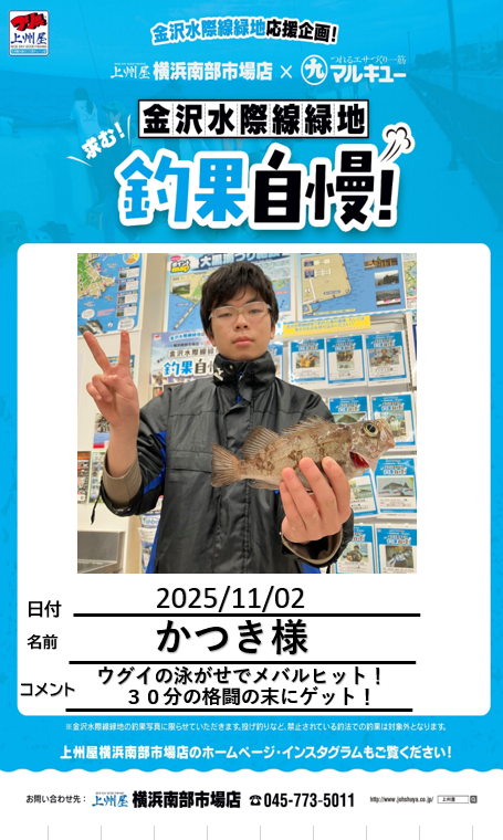 金沢水際線緑地釣果自慢!エントリー頂きました♪