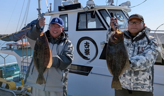 スタッフ大谷・鈴木コンビ、四倉沖でヒラメ!