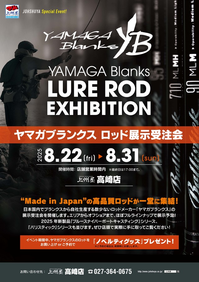 8/22から!ヤマガブランクス ルアーロッド展示受…