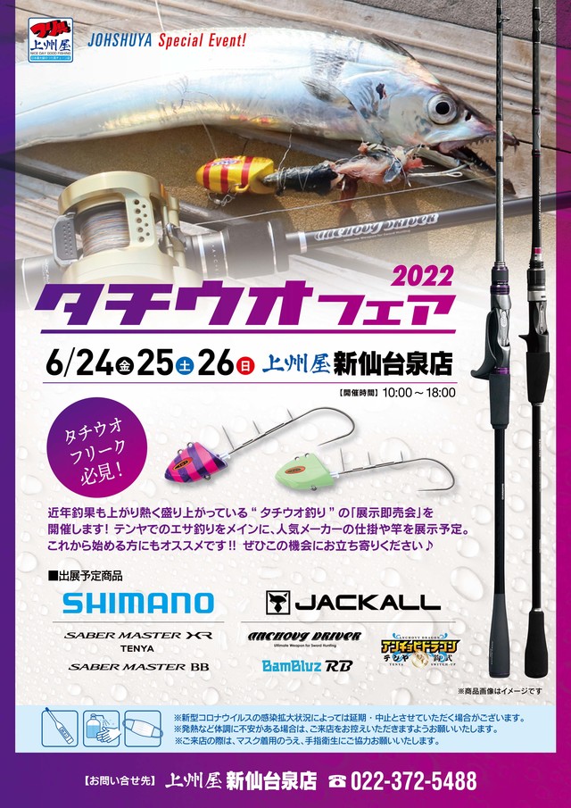 2022年6月24日(金)、25日()、26日(の3日間、上州屋新仙台泉店にてタチウオフェア2022を開催します!