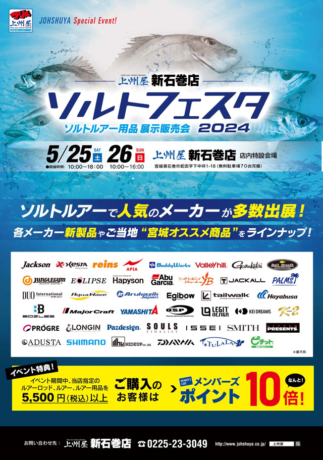 【新石巻店】人気メーカーが多数出展!ソルトルアーフェスタ2024in上州屋新石巻店!