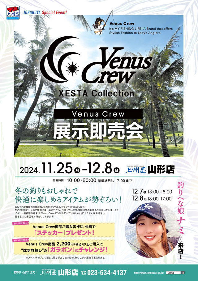 【山形店】VenusCrewビーナスクルー展示即売会!釣りへな娘ナミさん来店日も!