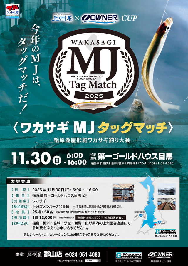 【参加者募集!】ワカサギMJタッグマッチ“桧原湖屋形船ワカサギ釣り大会”上州屋×OWNERカップ!