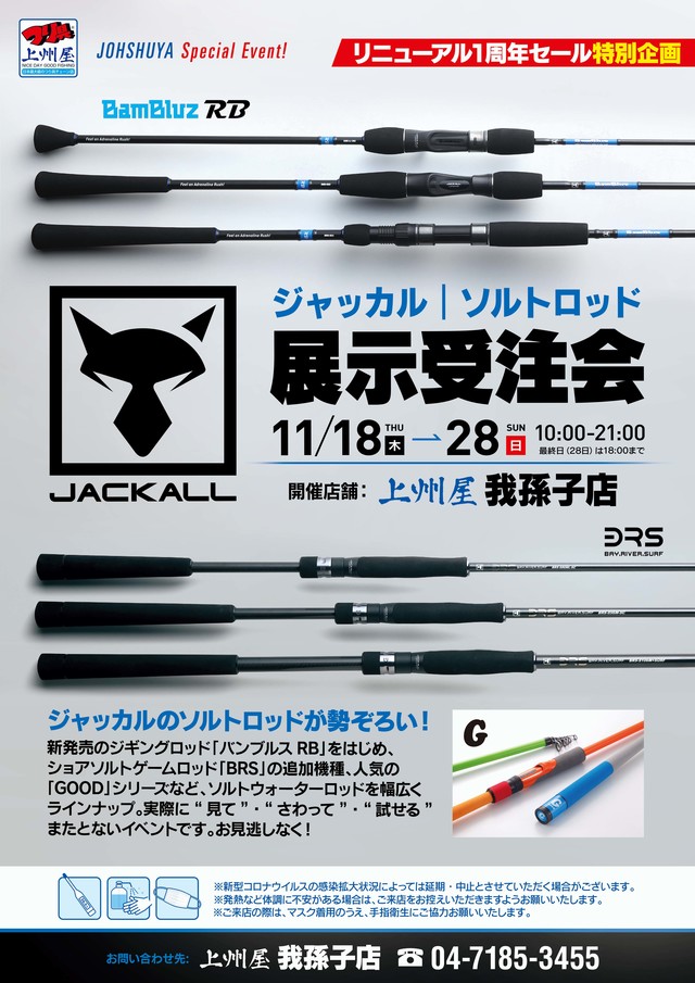 2021年11月18日(木)~28日(日)上州屋我孫子店にてジャッカル|ソルトロッドの展示受注会を開催します!