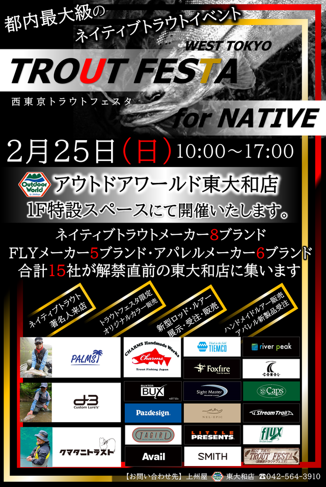 【東大和店】都内最大級“ネイティブトラウト”の祭典「西東京トラウトフェスタ for NATIVE」人気19ブランドが集結!