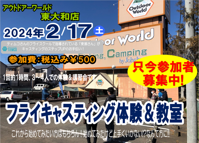 2024年2月17日(上州屋アウトドアワールド東大和店にてティムコ・フライキャスティング体験&講習会を開催します。