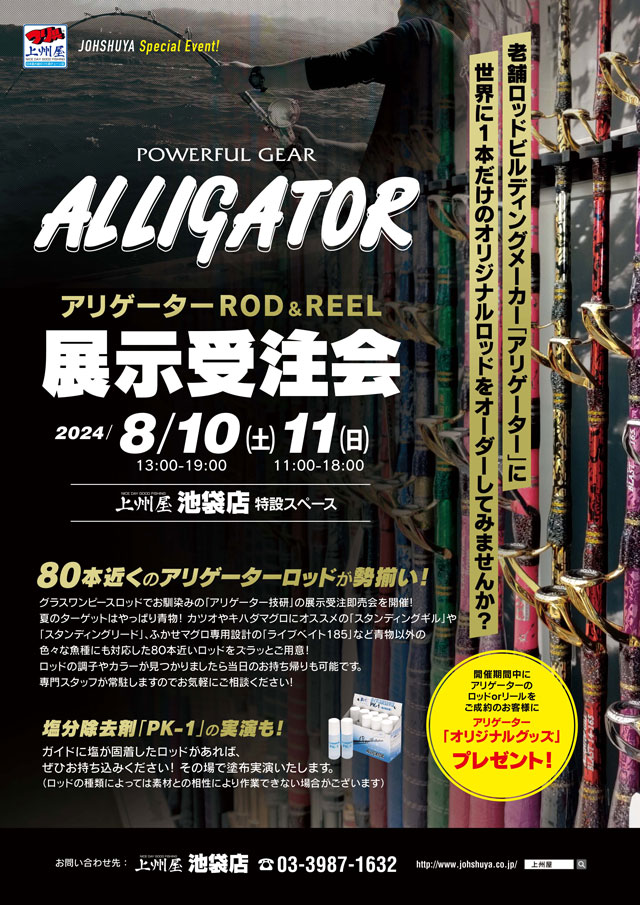 【池袋店】グラスワンピースロッドの元祖「アリゲーターROD&REEL展示受注会」開催!