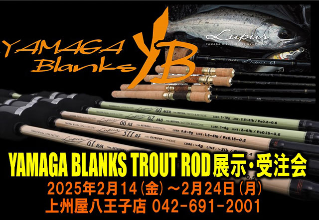 2025年2月14日(金)~2月24日(月/祝)の期間中、上州屋八王子店にてヤマガブランクスのトラウトロッドLupus(ルーパス)シリーズ展示受注会を開催します!