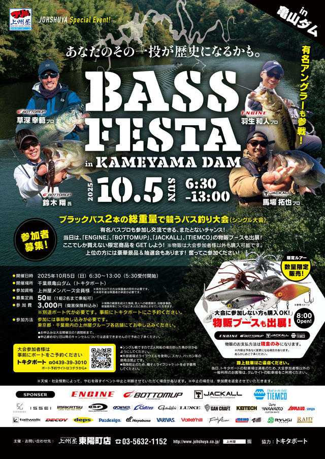 【亀山ダム|トキタボート】有名アングラー参戦&物販ブースも!BASSFESTA(バスフェスタ)in亀山ダム!
