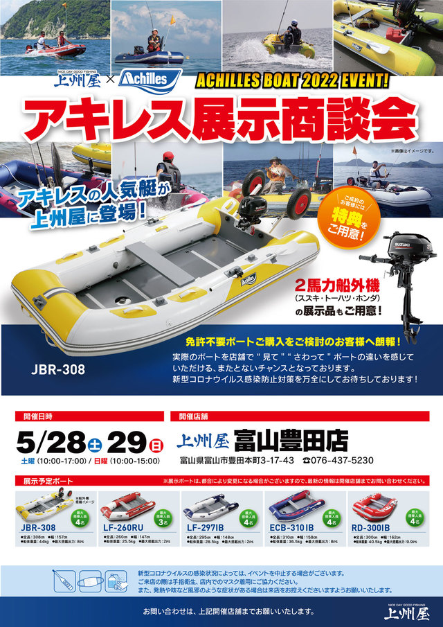 【富山豊田店】アキレス2022免許不要ボート“店頭”展示商談会!